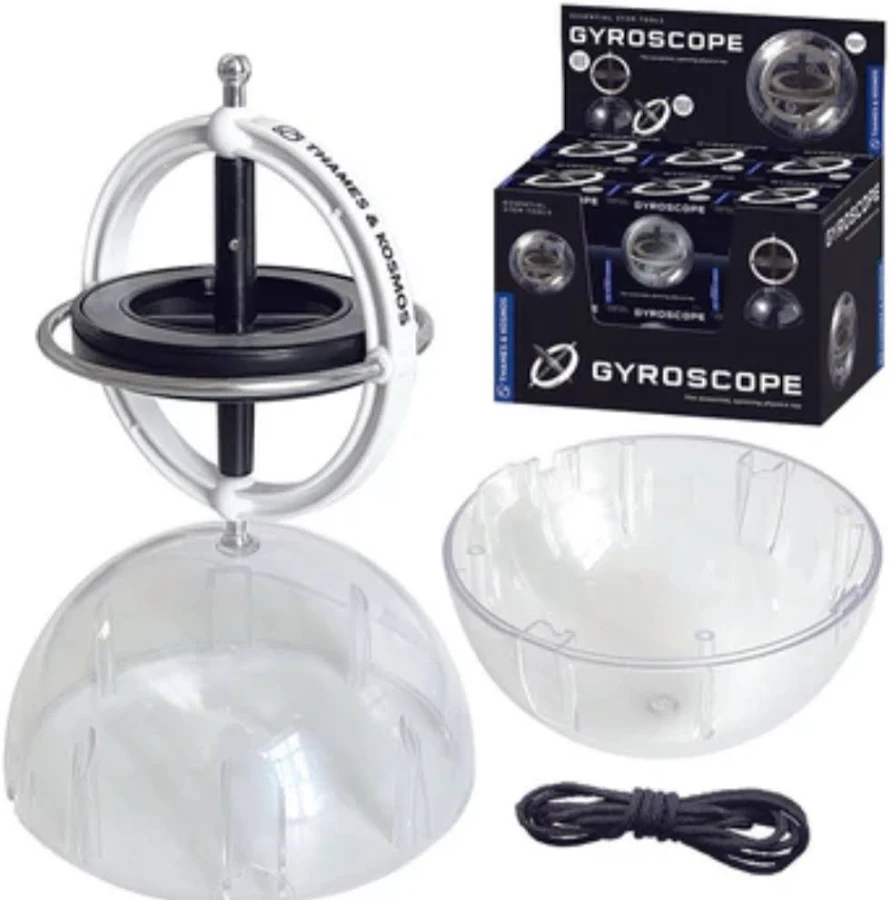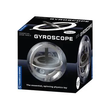 This timeless scientific instrument has been reimagined in a fresh, new design. Experiment with the gyroscope to learn about the physics of motion, forces, and gravity. Learn about gyroscopic forces, and see and feel them in action. Have fun getting your gyroscope to do classic physics tricks. Make the gyroscope balance on a tabletop, on a stand, and on a string. Spin the gyroscope inside the included clear plastic sphere and see and feel the forces acting on the sphere, which doubles as a storage case for your gyroscope.