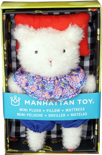 Sleepy play time on-the-go. Includes a soft plush cat with removable clothing, a quilted mattress pillow and a keepsake box. Encourages imaginative play and motor development.