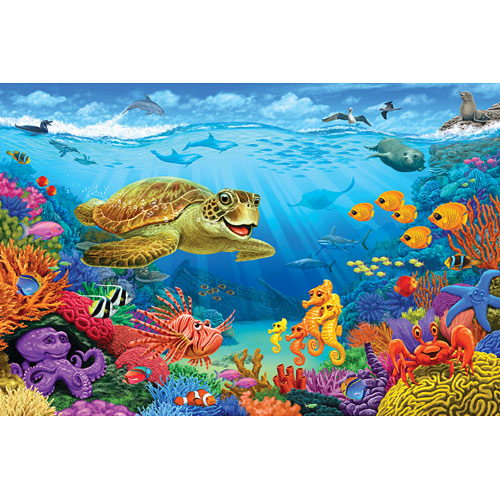 This wonderful 36-piece floor puzzle is a pure delight for ocean lovers! When completed it measures 24″ x 36″ and takes you away to an underwater world. Can you name all the colorful creatures?